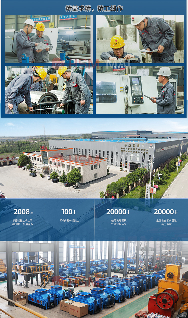 4.華盛銘高鉻錳鋼耐磨材質(zhì)含有稀有金屬輥皮已申請國家專利,出料粒度可以精確調(diào)整已申請國家專利,雙輥破碎機(jī)輥筒已經(jīng)申請國家專利。